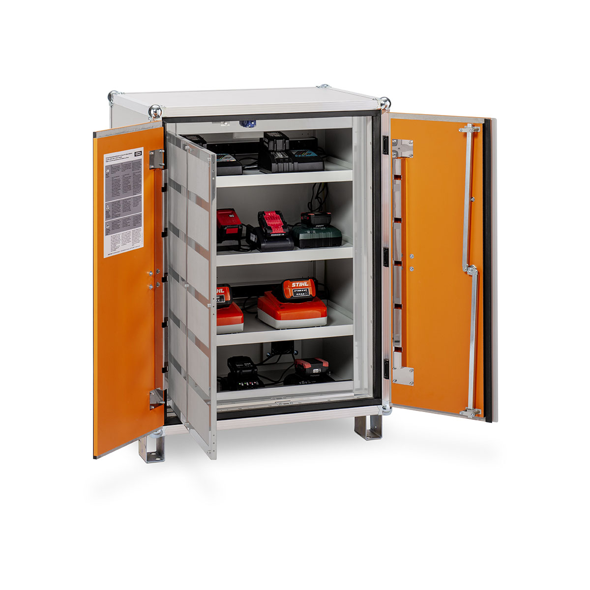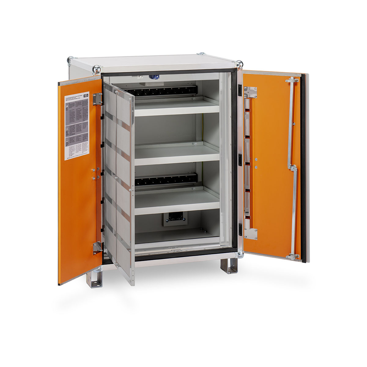 Feuer- und Explosionswiderstandfähiger Sicherheitsschrank, der speziell zur Lagerung und Laden von Lithium-Ionen-Batterien geeignet ist. Getestet und geprüft nach VDMA Einheitsblatt 24994:2024-08 sicheres Lagern und Laden von Lithium-Ionen-Batterien bis 3 kWh – ideal für Anwendungen mit hohem Energiebedarf. höchste Sicherheit im Brandfall – hält einem Batteriebrand stand und gewährleistet kein Austreten von Flammen und Funken. modulares Baukastensystem – kombinier- und stapelbar mit weiteren lockEX-Baureihen für maximale Flexibilität und Erweiterbarkeit. patentrechtlich geschütztes Druckentlastungssystem lockEX propagationsverhindernde Lagerebenen – verhindern die Ausbreitung von Bränden zwischen einzelnen Batteriemodulen. Anbindung an zentrale Brandmeldeanlage (BMA) – für nahtlose Integration in bestehende Sicherheitsinfrastruktur.